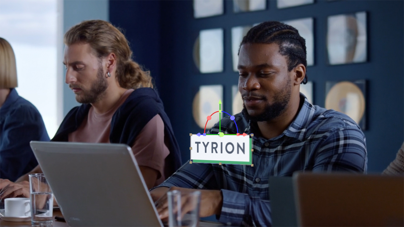 Once this is complete, you can turn on the roto layer and you’ll be able to see your finished product in full. The adjusted nametag should slide behind laptops, blur with the footage, and be positioned at the right angle with the scene.